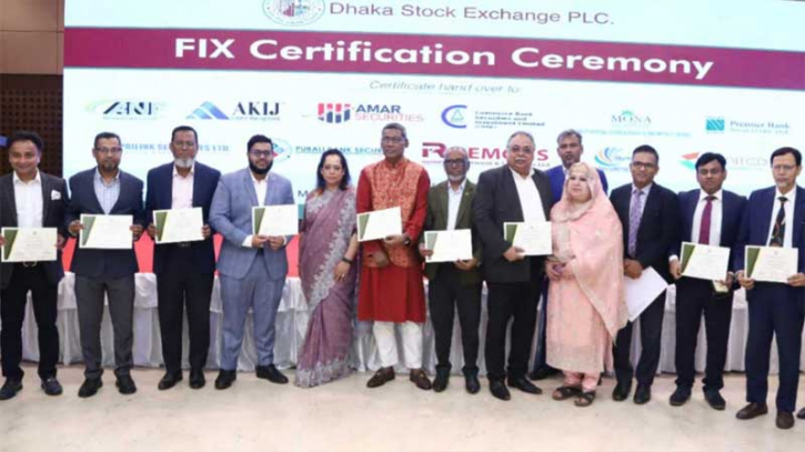 বুধবার (১১ মার্চ) ডিএসই মাল্টিপারপাস হলে আয়োজিত এক অনুষ্ঠানে ডিএসইর ব্যবস্থাপনা পরিচালক নুজহাত আনোয়ার ব্রোকারেজ হাউসগুলোকে ফিক্স সার্টিফিকেশন দেন।
