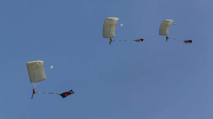 সশস্ত্র বাহিনীর উদ্যোগে অনুষ্ঠিত অনুষ্ঠানে অংশ নেন ‘টিম বাংলাদেশ’-এর ৫৪ জন প্যারাট্রুপার। এটি বিশ্বের সর্বাধিক পতাকা হাতে প্যারাট্রুপিং হিসেবে রেকর্ডে জায়গা করে নিয়েছে। ঐতিহাসিক এই মুহূর্ত প্রত্যক্ষ করেন প্রধান উপদেষ্টা অধ্যাপক ড. মুহাম্মদ ইউনূস।